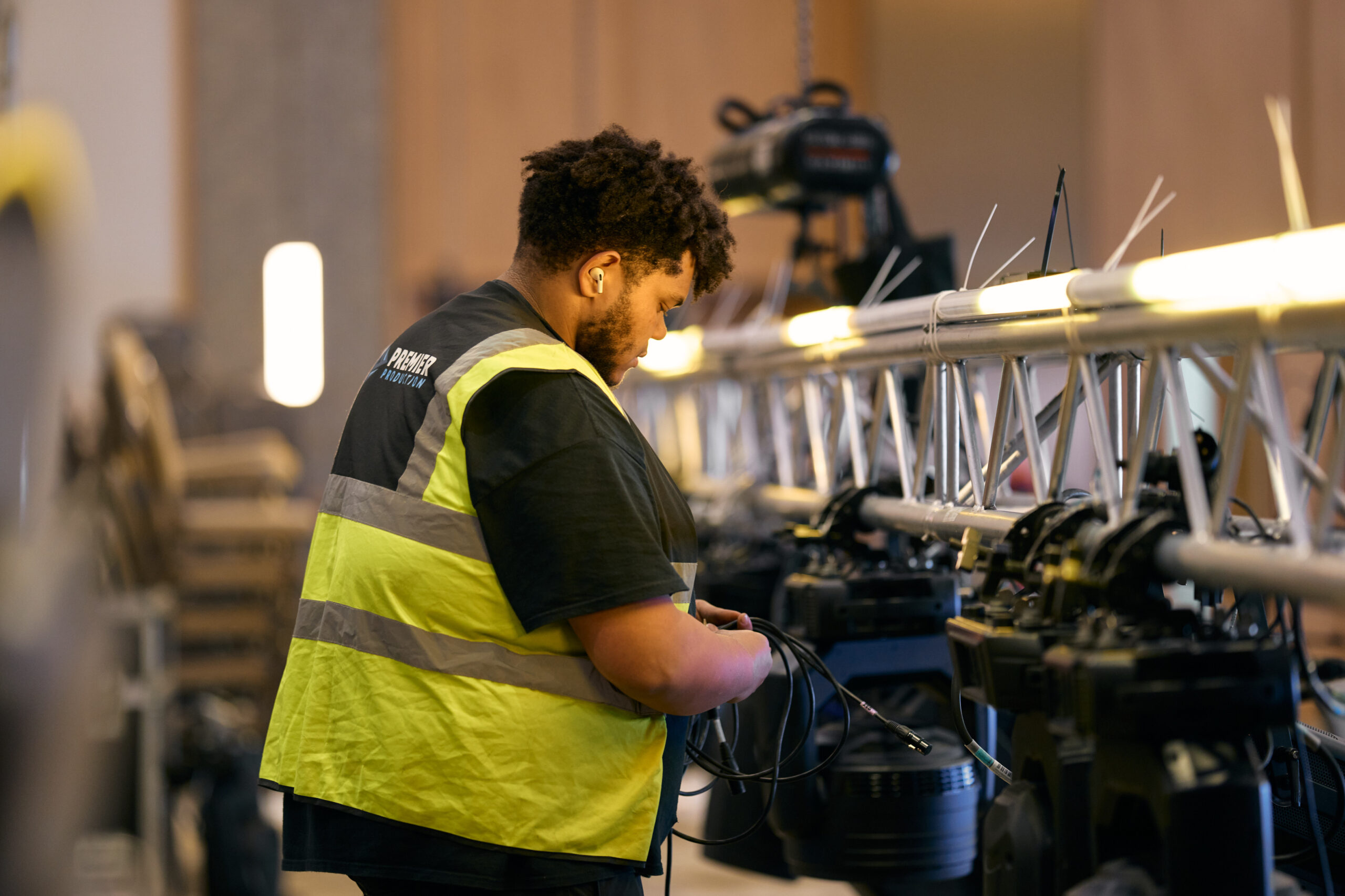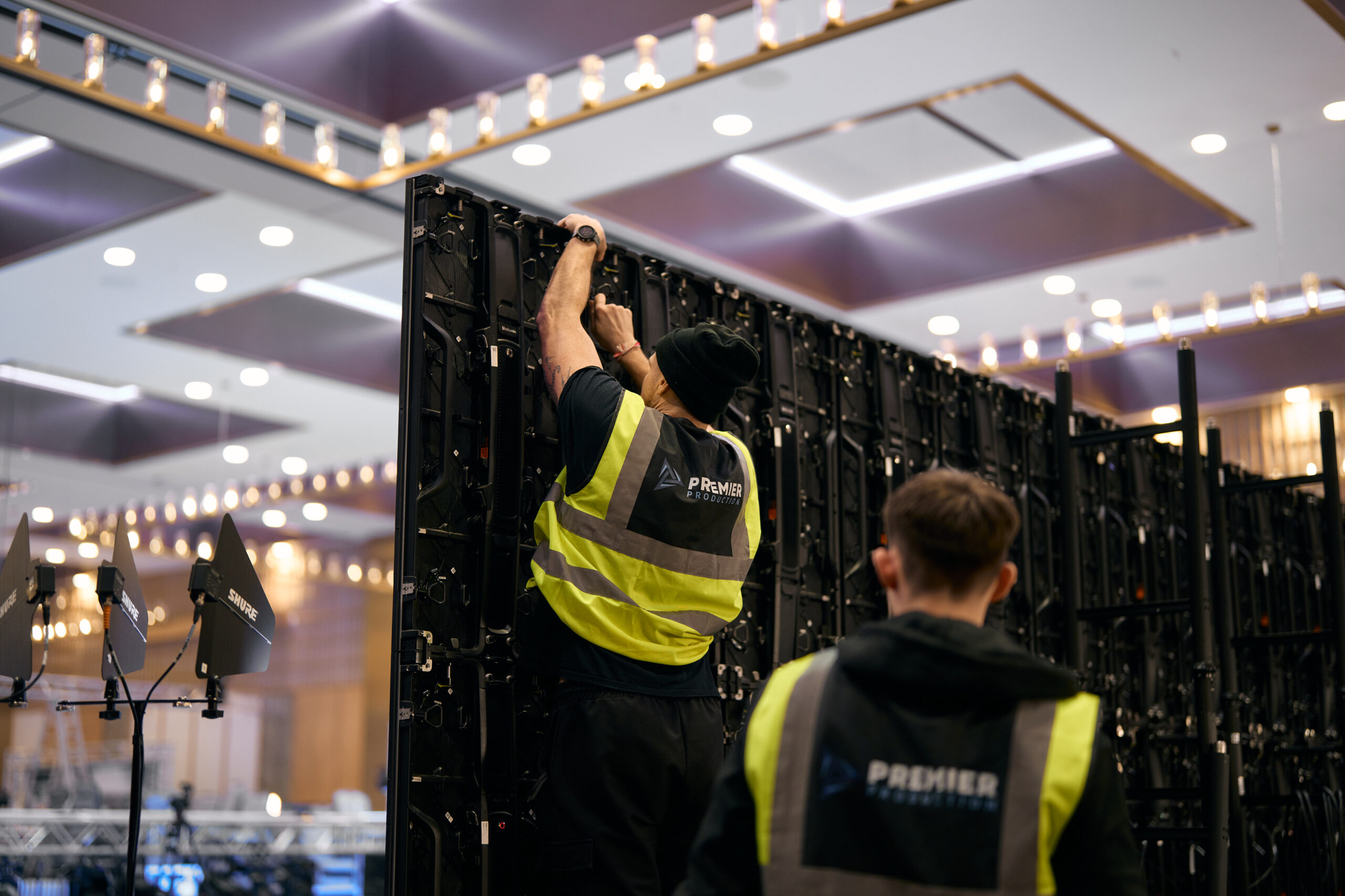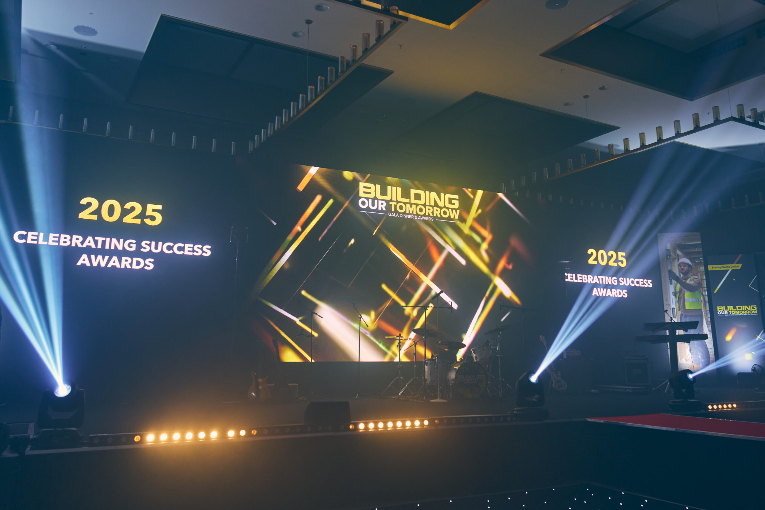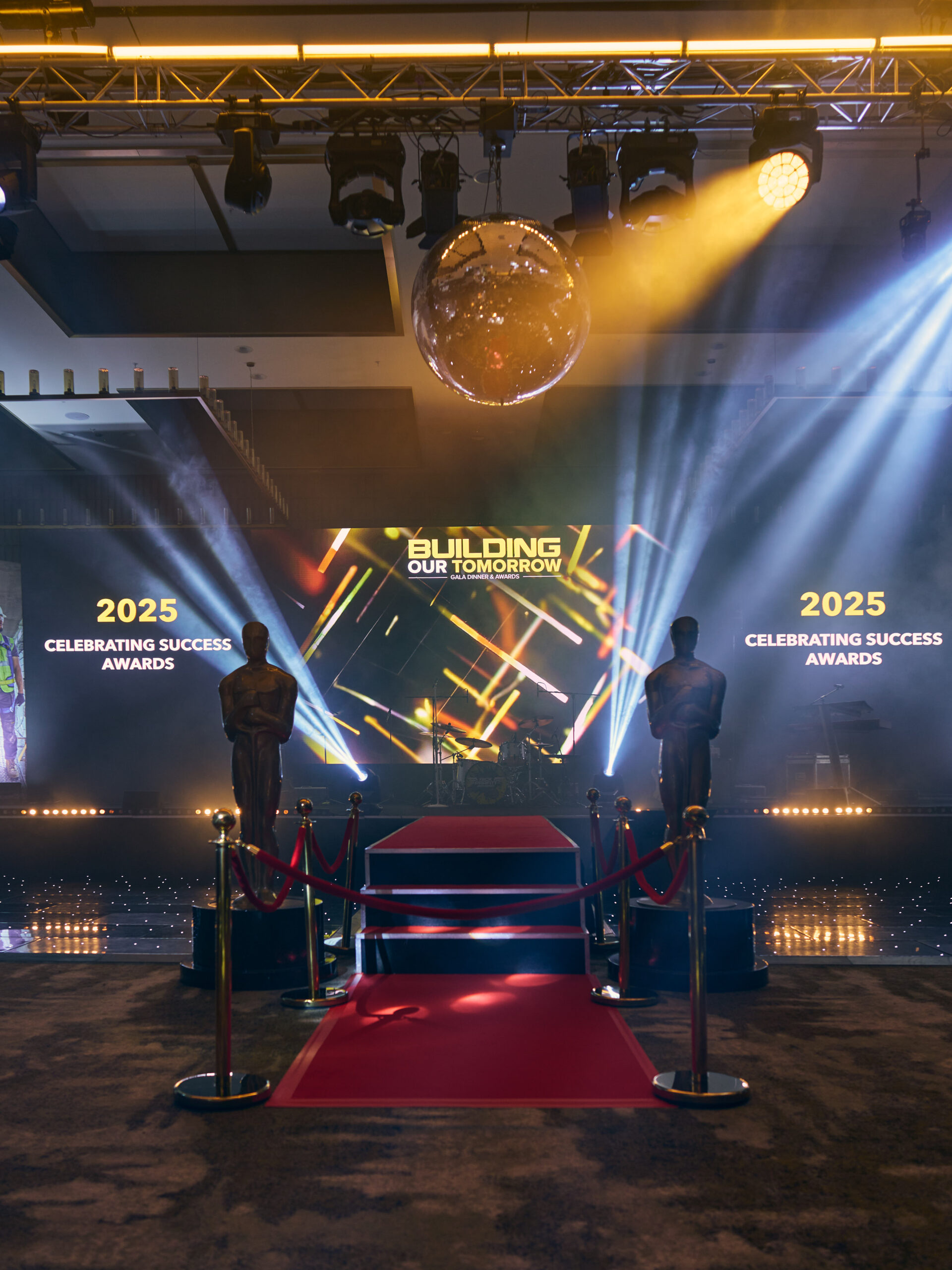 The lighting design incorporated over 200 fixtures, including beam, profile, wash, and scenic uplighting, all working together to enhance the overall visual aesthetic. The system was controlled via a lighting desk operating across 20 Art-Net universes of DMX, allowing precise and dynamic programming throughout the event.